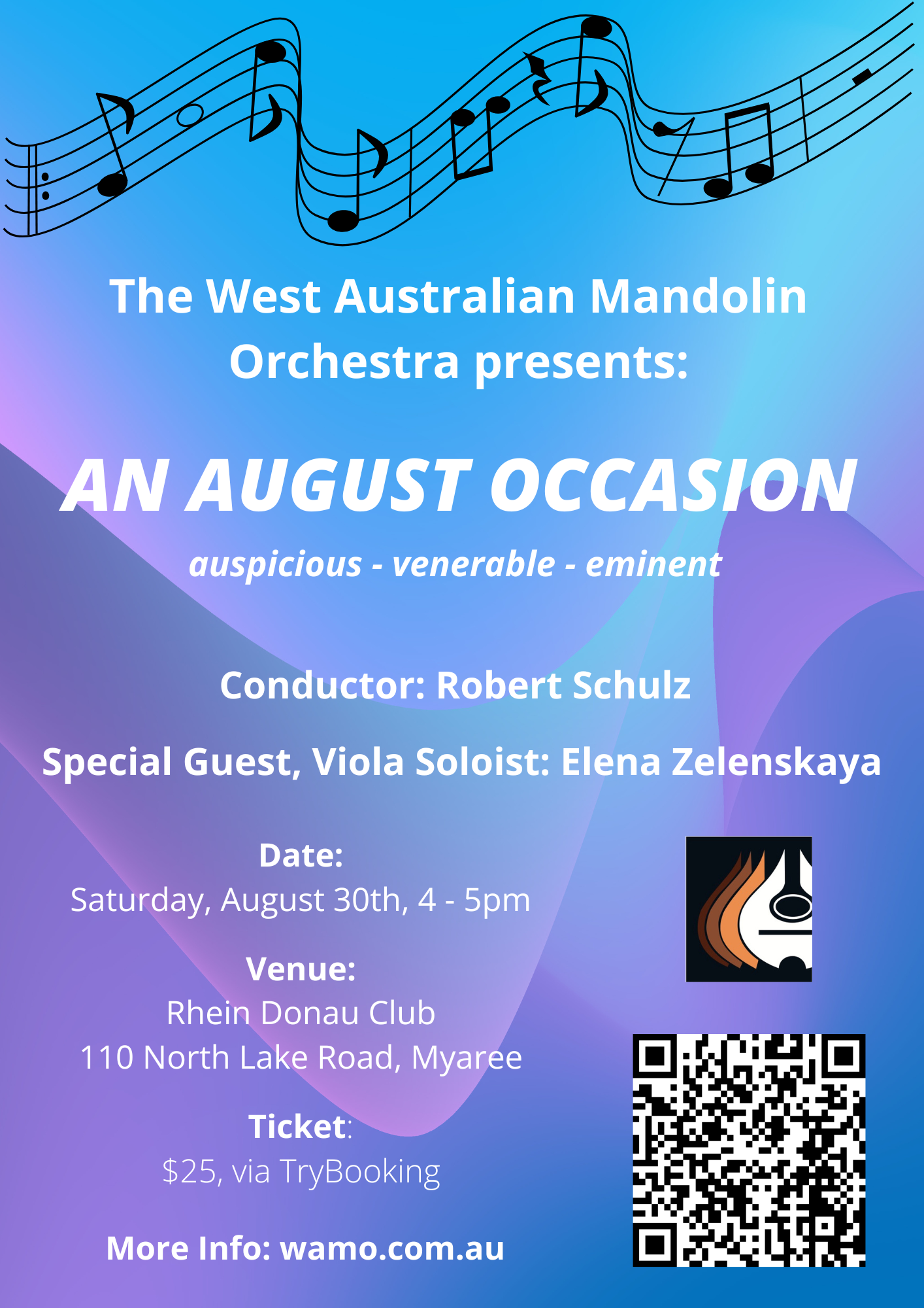 Our program also features special guest soloist, violist Elena Zelenskaya. WAMO conducted by Robert Schulz.